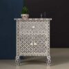 The Bone Inlay Nightstand is a true work of art, showcasing the beauty of ancient craftsmanship in a modern context. Adorned with an exquisite bone inlay pattern, this nightstand brings an air of sophistication to your bedside. Each piece is skillfully handmade by artisans who have perfected the art of creating intricate designs that effortlessly elevate any bedroom space.
