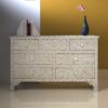 Add a touch of luxury to your space with our Bone Inlay Sideboard. The intricate bone inlay design showcases the skillful craftsmanship of Indian artisans. Handmade with attention to detail, this sideboard exudes artistry and elegance. With ample storage and a sturdy wooden base, it brings both beauty and functionality to your space.