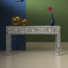 Enhance your living space with the exquisite beauty of our Curved Inlay Console Table. Featuring delicate bone inlay in a floral pattern and meticulously handmade, this table is a true testament to artistry and craftsmanship.