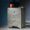 Introducing our exquisite Embossed Metal Nightstand, a perfect blend of modern design and craftsmanship. Handmade with meticulous attention to detail, this nightstand is a true statement piece for your bedroom. With two spacious drawers, it offers ample storage space, while the embossed metal finish adds a touch of elegance and uniqueness. The nightstand’s wooden base ensures stability and durability, making it both functional and stylish.