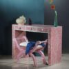 Introducing our Metal Console Table With Stool Set, a perfect blend of modern design and functionality. The straight console features three drawers, offering ample storage space for your essentials. Adorned with German silver embossing and intricate details, it showcases exceptional craftsmanship. The set also includes a vanity stool, providing a comfortable seating option. Both the console table and stool are handmade with a wooden base, ensuring durability and stability. Elevate your living space with this contemporary set, adding style and practicality to your home.