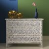 Optimize your storage and style with our Stripe Chest of Drawer with Mirror Frame. The unique stripe bone inlay design adds a contemporary touch to your decor. Handcrafted with attention to detail, this chest becomes a focal point in any room. The sturdy wooden base ensures durability, and the spacious drawers provide ample storage option. The matching mirror frame complements the chest, completing the look of your space.