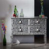 Introduce elegance and craftsmanship to your living space with our Bone Inlay Knock Down Table. Adorned with a floral pattern in bone inlay and featuring intricate handmade details, this table is both visually stunning and functional.