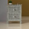 Unleash the allure of our Cross Inlay Bedside Table, a captivating blend of classic and contemporary design. The table boasts a striking bone inlay cross pattern, meticulously handcrafted to perfection. With its one drawer and storage space, this bedside table not only serves a functional purpose but also becomes a statement piece in your bedroom decor.