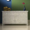 Experience timeless beauty with our Curved Blossom Inlay Dresser. The intricate bone inlay design showcases skilled craftsmanship. Handmade with attention to detail, the curved silhouette of this dresser adds an elegant touch to your room. The sturdy wooden base ensures durability, and the multiple drawers provide ample storage option.