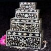 Store and display your belongings with our Inlay Box Set of 5. Handcrafted with intricate inlay design, these boxes offer a stylish and functional storage solution. With their different sizes and patterns, they add a touch of sophistication to any room.