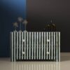 Our Metal Finish Drawer Chest combines sleek design and practicality. This chest features four sleek drawers, providing storage space for your essentials. Adorned with German silver embossing and intricate details, it showcases exceptional craftsmanship. The chest is handmade with a wooden base, ensuring durability and stability. Whether used in the bedroom, living room, or office, this Metal Finish Drawer Chest adds a touch of elegance and functionality to your decor.