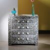Organize your belongings in style with our Pearl Inlay Bureau Cabinet. This meticulously handmade cabinet features a beautiful mother of pearl inlay design and offers ample storage space. With its intricate details, easy-to-open drawers, and sturdy wooden base, this bureau cabinet combines functionality with artistic craftsmanship.