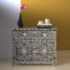 Optimize your storage and style with our Stripe Inlay Curved Chest and Mirror Frame. The unique stripe bone inlay design adds a contemporary touch to your decor. Handcrafted with attention to detail, the curved silhouette of this chest becomes a focal point in any room. The sturdy wooden base ensures durability, and the spacious drawers and shelves provide ample storage option. The matching mirror frame complements the chest, completing the look of your space.