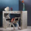 Introduce a touch of elegance to your living space with our Antique Metal Console. This modern straight console table features three drawers, providing convenient storage options. Adorned with German silver embossing and intricate details, it showcases exceptional craftsmanship. The console is handmade with a wooden base, ensuring durability and stability. With its timeless design, this Antique Metal Console becomes a focal point in any room, adding both style and functionality.