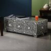Elevate your living space with our Bone Coffee Table. Adorned with a striking bone inlay in a floral pattern and meticulously handmade, this table exudes elegance and brings a touch of artistry to your home.