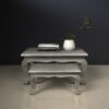 Make a statement in your living room with our Square Center Table. Featuring a captivating bone inlay in a floral pattern and meticulously handmade, this table combines artistic beauty with functionality for a perfect addition to your home.